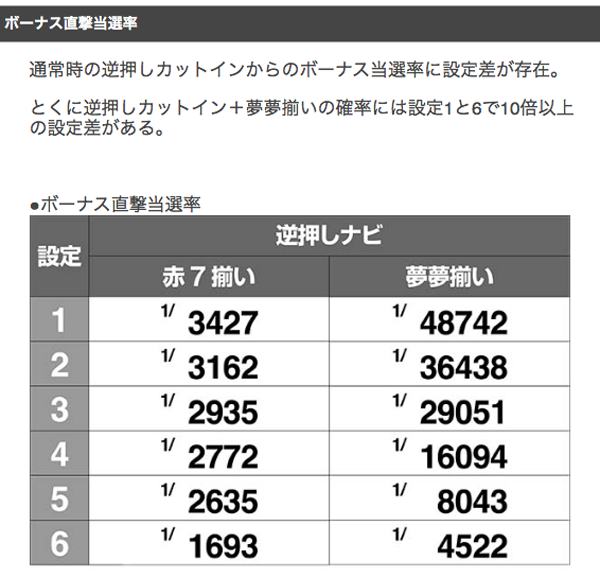 また、逆押しカットイン発生時の夢夢揃いには大きな設定差が設けられている。