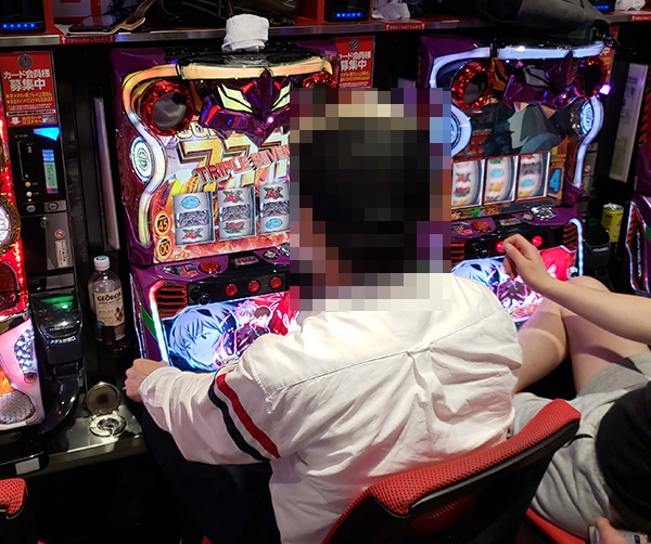 活気に包まれているなかを進んでいくと、「パチスロ ヱヴァンゲリヲン AT777」からひときわ大きな盛り上がりが伝わってきた。
