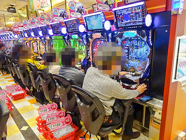 1円パチンコの支持も厚い。遊技を楽しむプレイヤーたちの姿が印象に残っている。