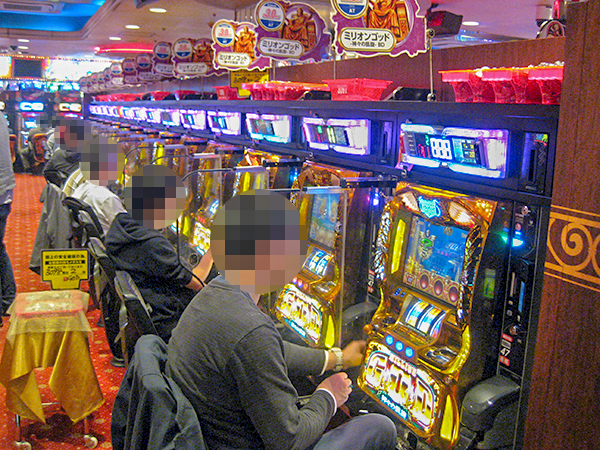 1000円/100枚パチスロは機種を問わず好評を得ており、楽しそうにレバーを叩くプレイヤーが多かった。