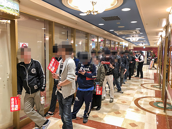 開店前から約80人ものプレイヤーが足を運んでおり、遊技開始を前にして高揚した表情を見せていた。