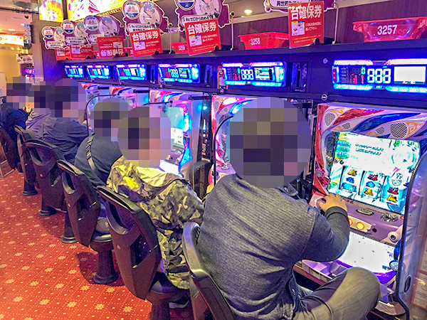 1000円/100枚パチスロに目を移すと機種性能を上手く発揮するプレイヤーが多く、実に微笑ましい光景が広がっていた。