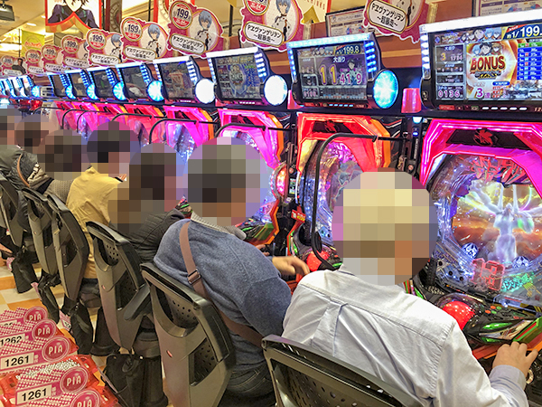 「CRフィーバー戦姫絶唱シンフォギア」や「ぱちんこCR聖戦士ダンバイン」では理想的な展開を迎えたプレイヤーを目撃。シマ全体が明るい雰囲気に包まれていた。