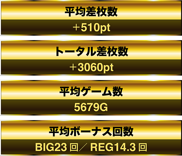 最終的な平均ゲーム数は5000Gを上回り、平均ボーナス回数は約37回となっていた。