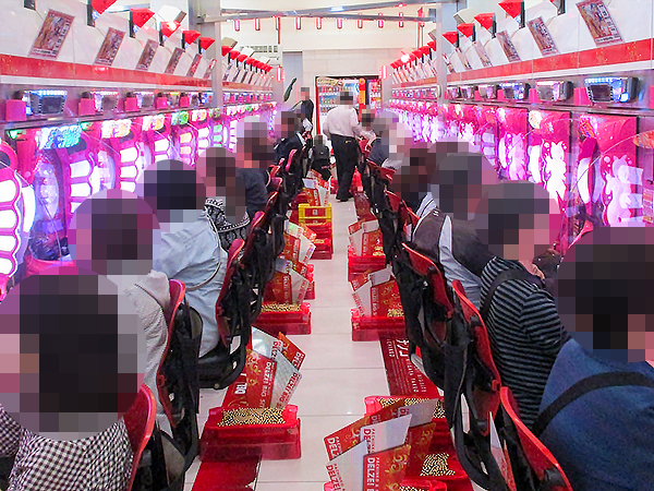取材時の店内には既に多くのプレイヤーが集結し、パチンコ・パチスロを問わずにぎやかな状況となっていた。