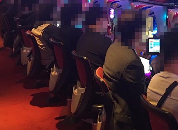 大にぎわいとなっているパチスロコーナーをみると、いくつもの場所に鮮やかな光景が広がっていた。