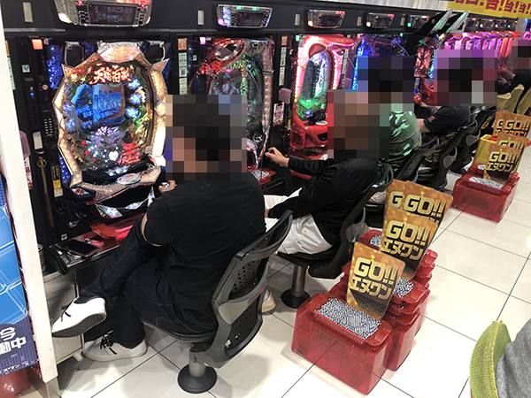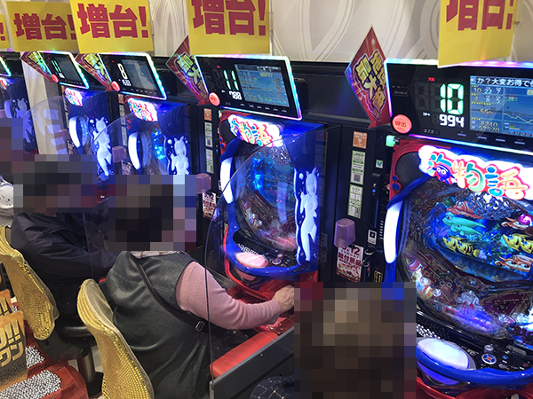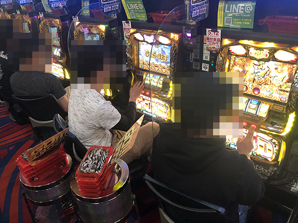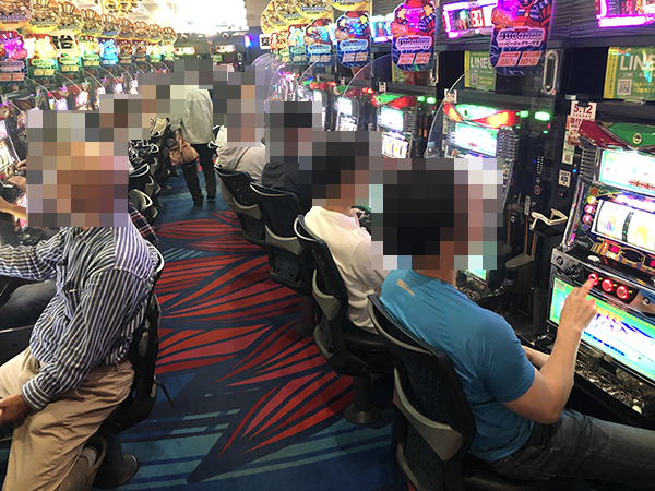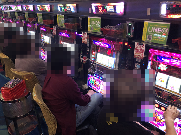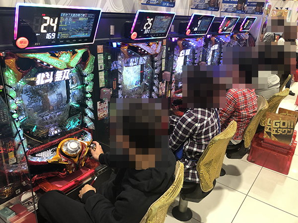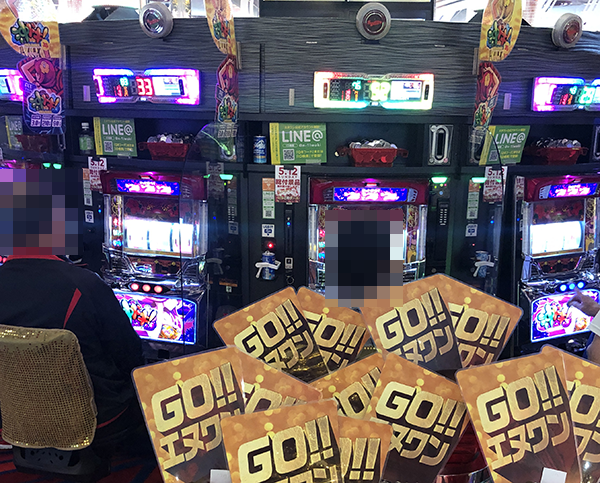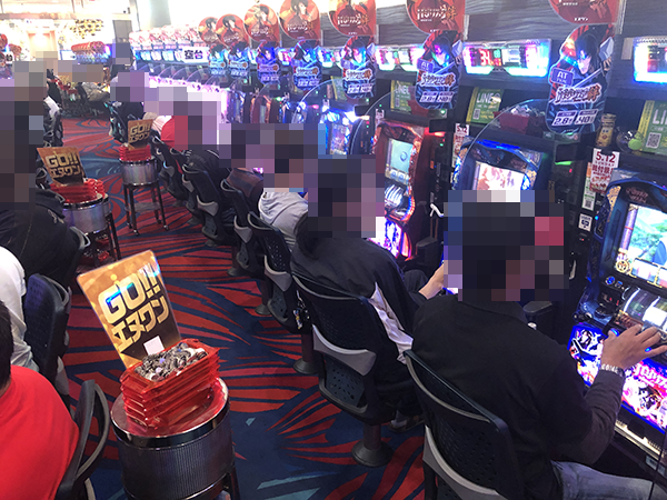 パチスロ全体がにぎわっており、プレイヤーたちは戦国武将のごとく華麗な技を披露していた。