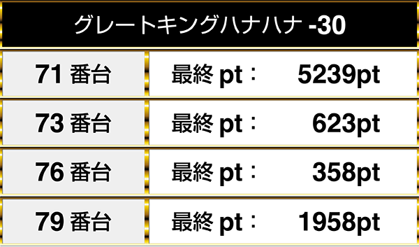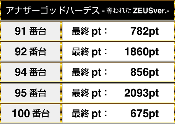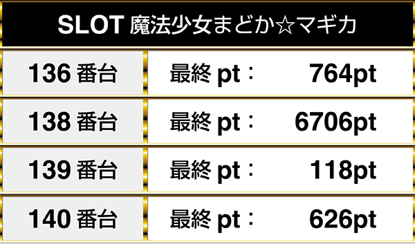 『SLOT魔法少女まどか☆マギカ2』や『アナザーゴッドハーデス-奪われたZEUSver.-』も設置台数の半分以上がプラスptでこの日を終えていた。