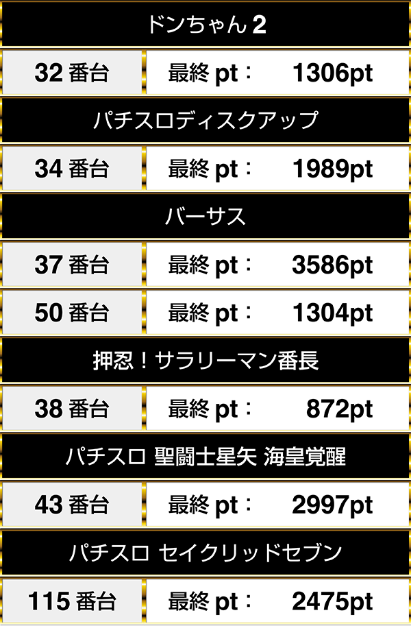 『パチスロ 聖闘士星矢 海皇覚醒』や『パチスロ セイクリッドセブン』も2000ptオーバーを記録していた。