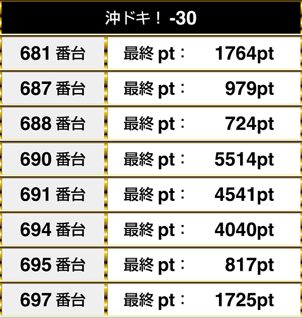パチスロコーナーで最多の設置台数を誇る「沖ドキ!-30」では、3台が4000ptオーバー!!