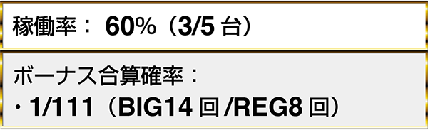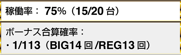 『アイムジャグラーEX-AE』や『ゴーゴージャグラー2』など、2機種以上のジャグラーシリーズでボーナス合算確率1/130以上のデータを目撃した。