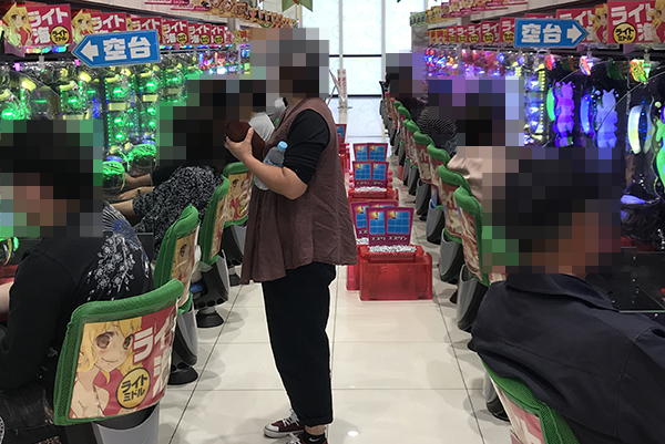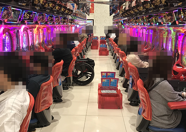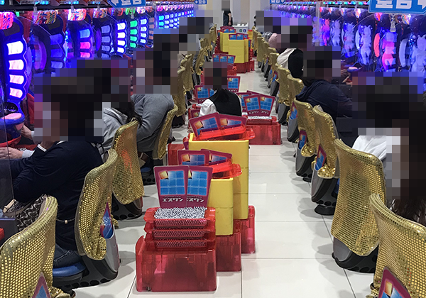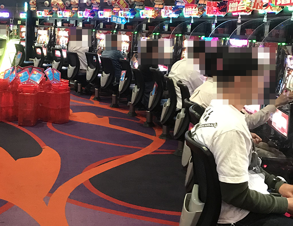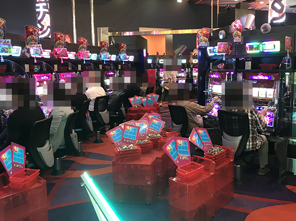 台間や通路が広々としている店内は、大勢のプレイヤーが集まっている状況でものびのびと遊技をおこなえる空間となっている。遊技台の周辺が清潔に保たれていることも好印象であり、プレイヤーたちは快適そうに過ごしていた。