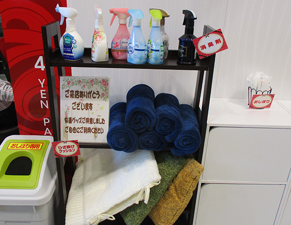 また、シマの横の通路に消臭スプレーが置かれていることも好印象。香りの種類も豊富であり、自分の好みのものを選ぶことでさわやかな気分になれるだろう。