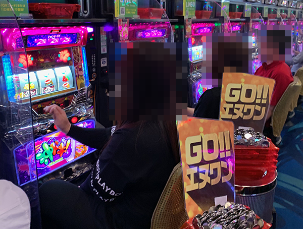 さまざまな機種が揃っているパチスロにて、たくさんのプレイヤーが遊技をおこなっていた。理想的な展開となっているためか、イキイキとした表情をみせていたことも覚えている。