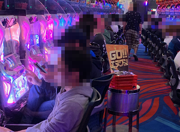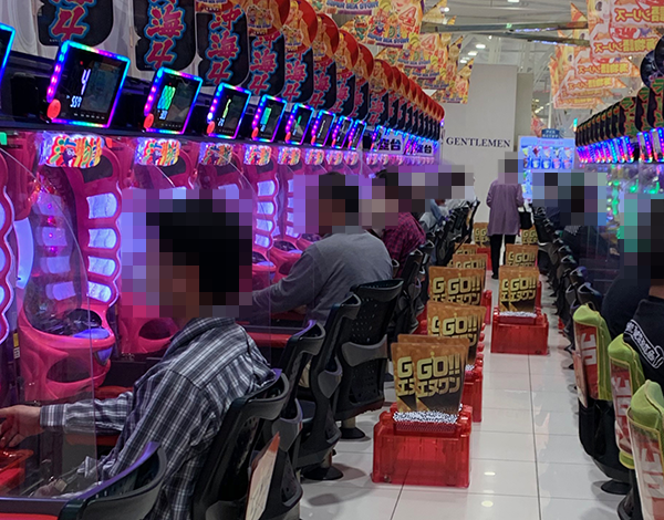 海物語コーナーを中心に、パチンコ全体が明るい雰囲気。納得のいく展開となっているためか、プレイヤーたちは笑みを浮かべてハンドルを握っていた。