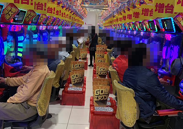 なかでも、「CR大海物語4」のにぎわいが大きく、活躍をしているプレイヤーの姿は、数々の戦を勝ち抜いてきた戦国武将の様相!