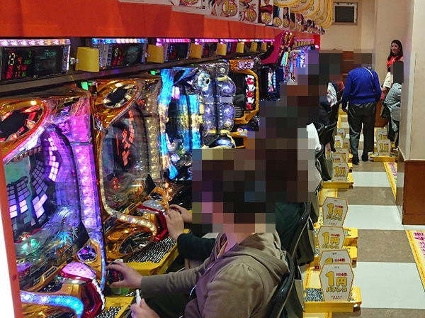 1円パチンコの稼働率も高く、空き台はほとんどみあたらない。