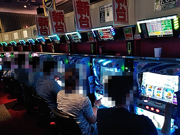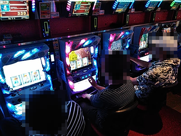 確認時は設置されている10台がほぼフル稼働。シマのいたるところに、笑みを浮かべながら遊技を楽しんでいる姿があった。