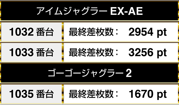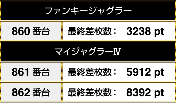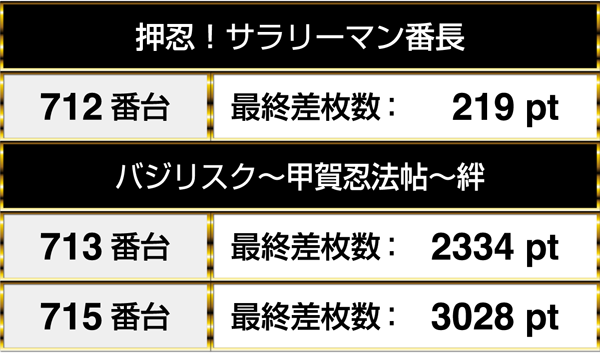 閉店時のデータでは3台がかたまってプラスptとなっていた。