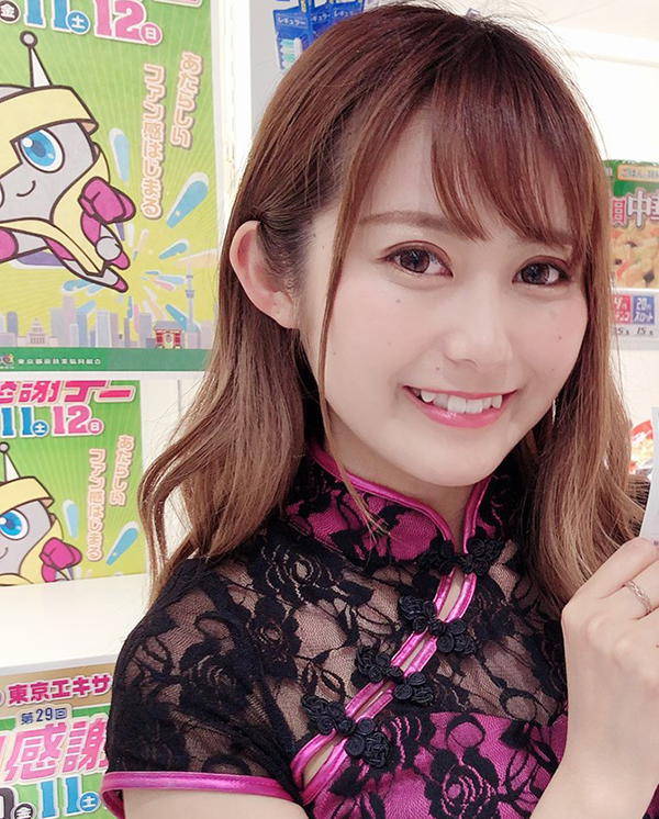 チャイナドレス風のコスチュームにお着替え完了★ かわいらしく着こなせているね(≧∇≦)