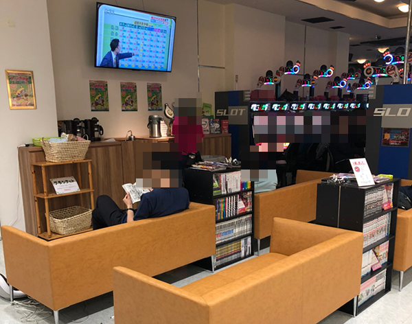 遊技スペースの近くにはソファが設置されており、ちょっとした休憩もとりやすいように思いました(*^◯^*)