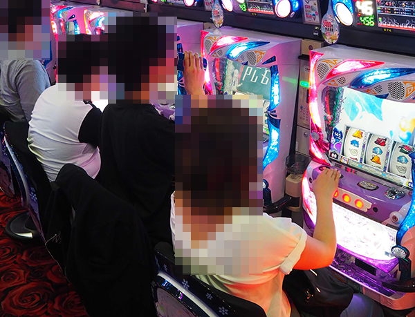 隣同士に座って談笑している姿やイキイキとレバーを叩いている様子など、さまざまなシーンを目にしている。どのプレイヤーも楽しげに遊技をおこなっており、満足度の高さが伝わってきた。