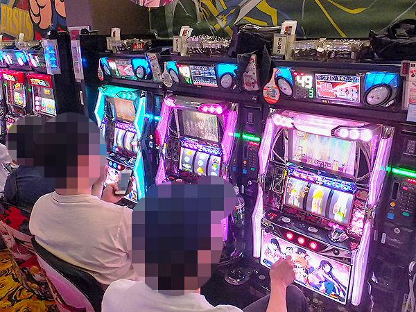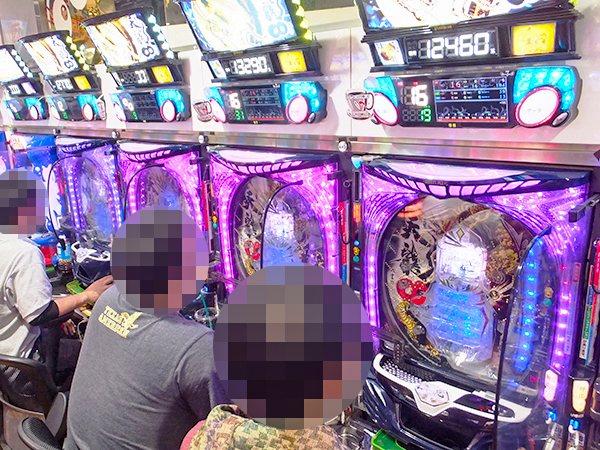 14時過ぎの4.16円パチンコを見てみると「CRフィーバー戦姫絶唱シンフォギア」や「CR天龍∞ 7000VS」が大盛り上がり。魅力的なシーンをシマのあちこちで目にしている。