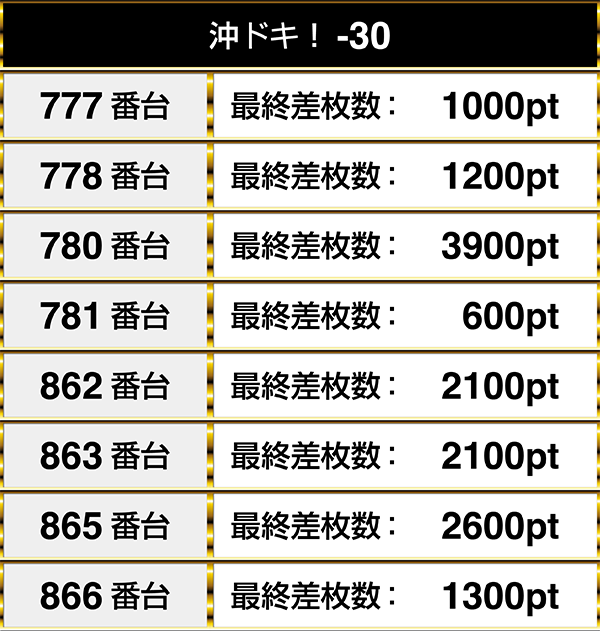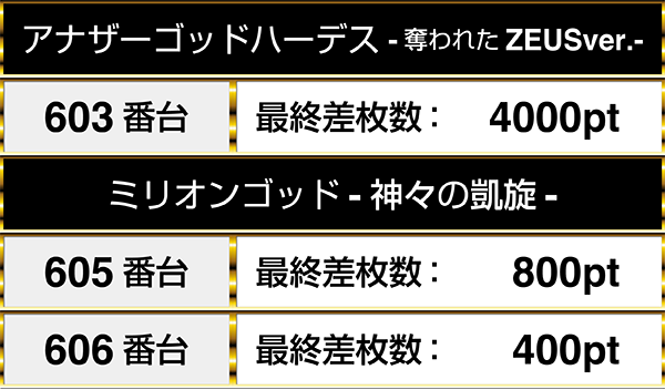 4台が並んでプラスptとなっている場所が2箇所あり、そのなかには3000ptオーバーのデータも存在!