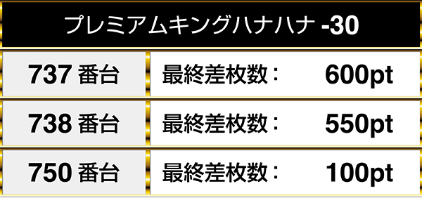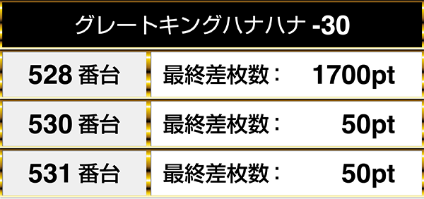 『グレートキングハナハナ-30』や『プレミアムハナハナ‐30』では、3台が並んでプラスptを記録!