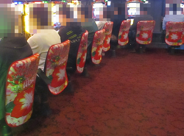 活気づいているパチスロコーナーにおいて、とくに目立っていたのは26台が設置されている「ハナハナ鳳凰-30」だ。