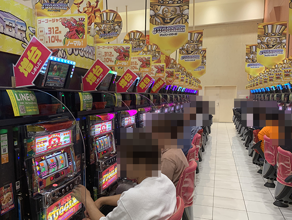 ジャグラーコーナー以外の場所に咲き誇っている笑顔も多く、パチスロ全体が活況。