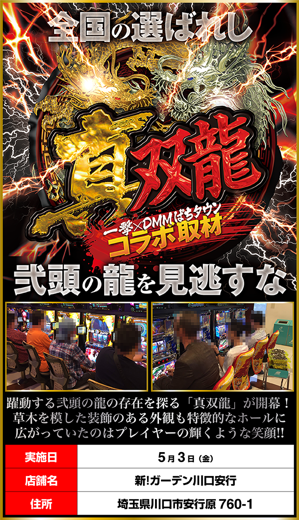 遊技とはひと味違った魅力もある「新!ガーデン川口安行」。「真双龍」をとおして、たくさんの笑顔のプレイヤーと出会えた。