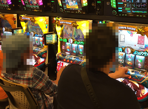 ホール内に足を踏み入れてパチスロコーナーを歩いていると、「パチスロ涼宮ハルヒの憂鬱」に活気のある光景が広がっていた。機種の前を通りかかった際に目に飛び込んできたのは、プレイヤーが披露していた鮮やかなパフォーマンスだ。