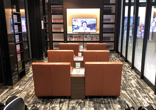 オシャレな内装の休憩スペースも居心地がよく、落ち着いて休めそうな空間となっている。漫画やテレビがあるため、しっかりと気分をリフレッシュできそうだ。