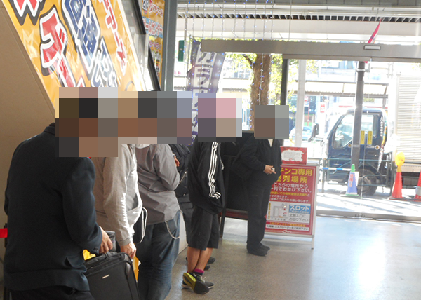 朝イチは20円パチスロの新機種「パチスロ鬼武者3 時空天翔」が人気。
