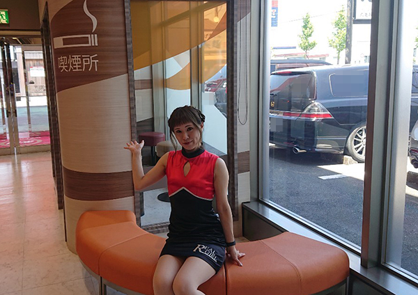 遊技台がみえる位置にソファと喫煙所があることも印象的。空き台を待っている間や一服をしてリフレッシュしたい時などに活用できるように思えた。