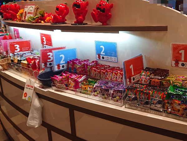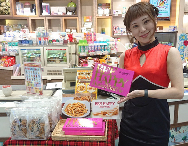 日用品やドリンク、小袋のお菓子など、品揃えが充実している賞品コーナーも魅力的。カウンターの前には、4月から5月頃が旬のはちみつを使ったお菓子が並んでおり、季節を感じられた。