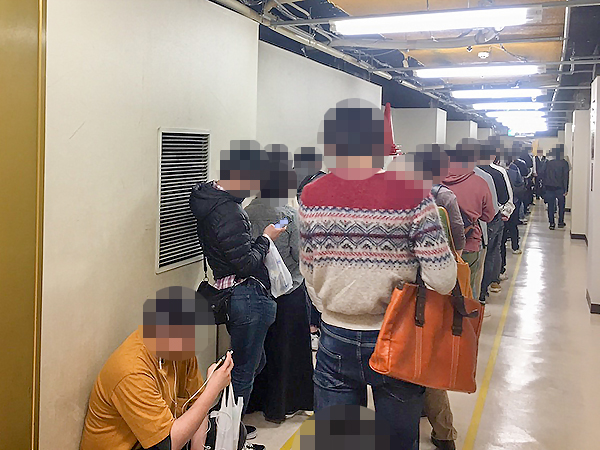 開店前からおよそ150人のプレイヤーが集結。各人、入店の時刻が来るのを心待ちにしているようだった。