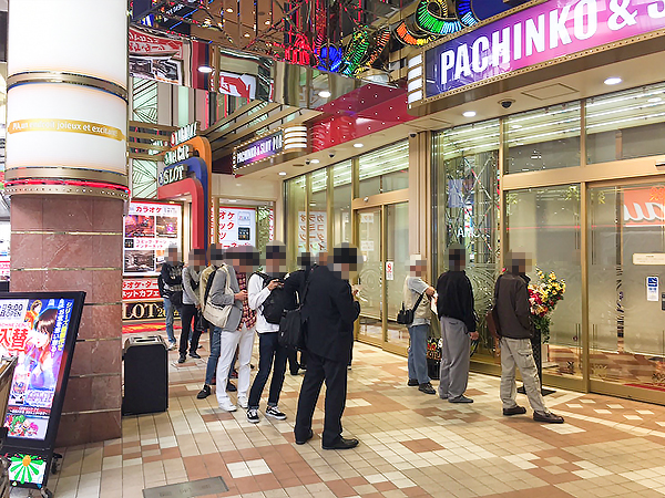 開店前からたくさんのプレイヤーが集結。各人、入店の時刻が来るのを心待ちにしているようだった。