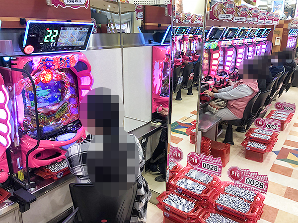 16時過ぎの4円パチンコでは「CR大海物語4」や「CRスーパー海物語IN沖縄4」、「Pスーパー海物語 IN JAPAN 2」といった海物語シリーズが盛況の様子。機種のポテンシャルを上手く発揮するプレイヤーを多数確認している。
