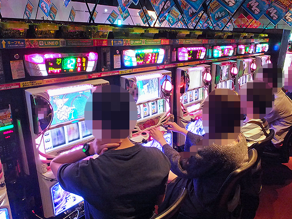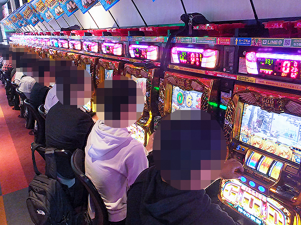 開店直後は20円パチスロの「ミリオンゴッド-神々の凱旋-」が好評で、続々と席が埋まっていた。