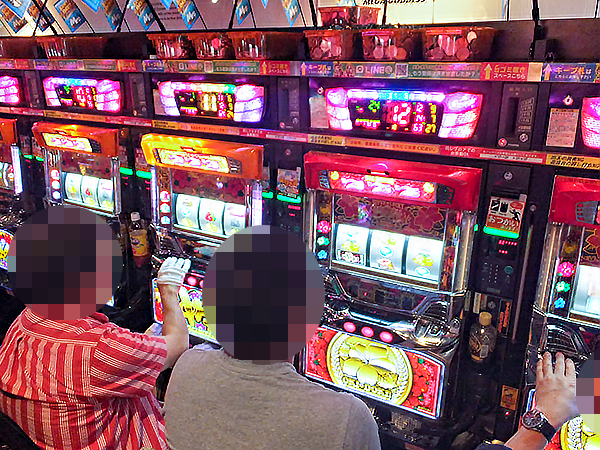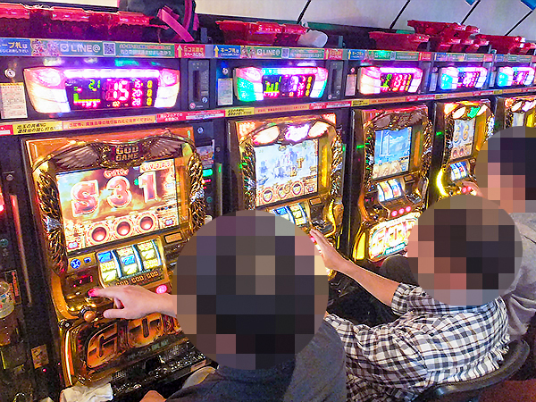 14時過ぎの20円パチスロを見てみると「ミリオンゴッド-神々の凱旋-」や「沖ドキ!-30」が大盛り上がり。プレイヤーの嬉しそうな表情を多数確認している。