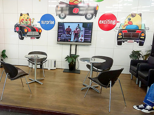 同店には大型テレビが設置されたレストスペースが用意されており、休憩時間などで利用すれば有意義なひと時を過ごせるはずだ。