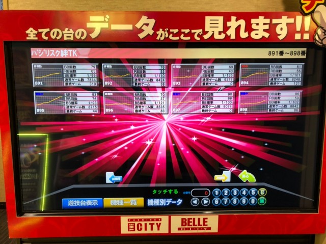 こちらも8台すべてがプラスで、全台差枚数も+28,913枚を記録。