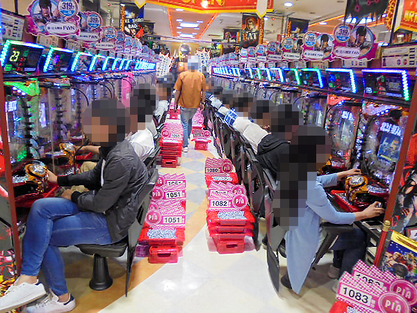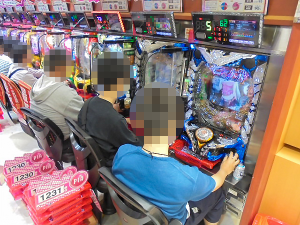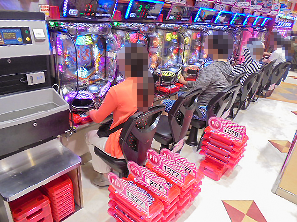 15時過ぎの500円/116玉パチンコを見てみると「ぱちんこCR真・北斗無双」や「CR聖闘士星矢〜BEYOND THE LIMIT〜MLA」が活況。プレイヤーの満足そうな表情から、充実した時間を過ごしていたことがうかがえる。