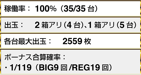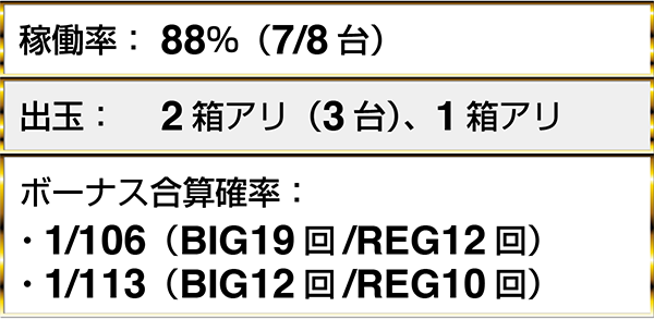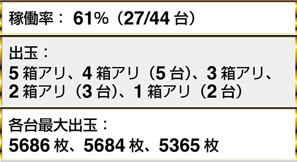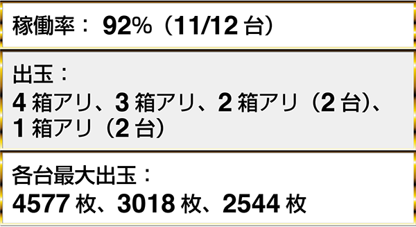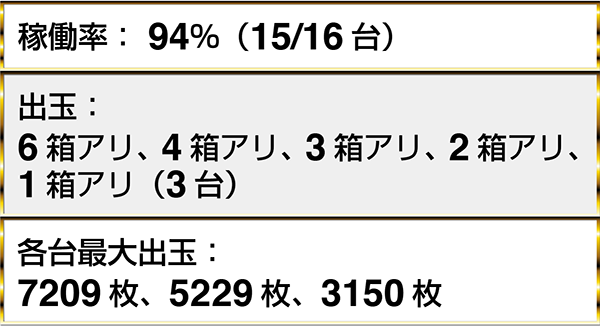 『ミリオンゴッド-神々の凱旋-』においては、6名のプレイヤーが4箱以上の出玉を獲得していた。