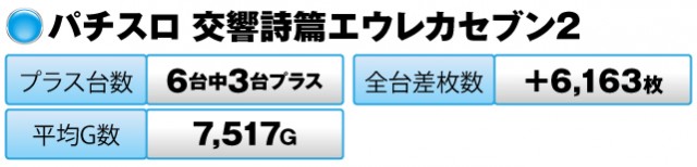 11台中8台がプラスで全台差枚数は+22.167枚と、こちらもファンの期待に応える働きを見せている。
