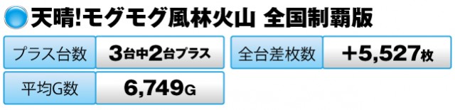 4台中3台がプラスで、全台差枚数は+10,967枚を記録。