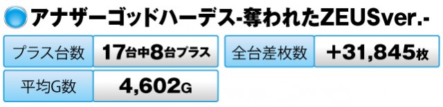そして定番人気の『アナザーゴッドハーデス-奪われたZEUSver.-』も好調。