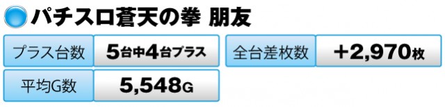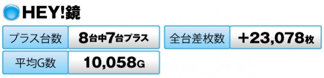 8台中7台がプラスという安定感で全台差枚数も+23,078枚を記録。